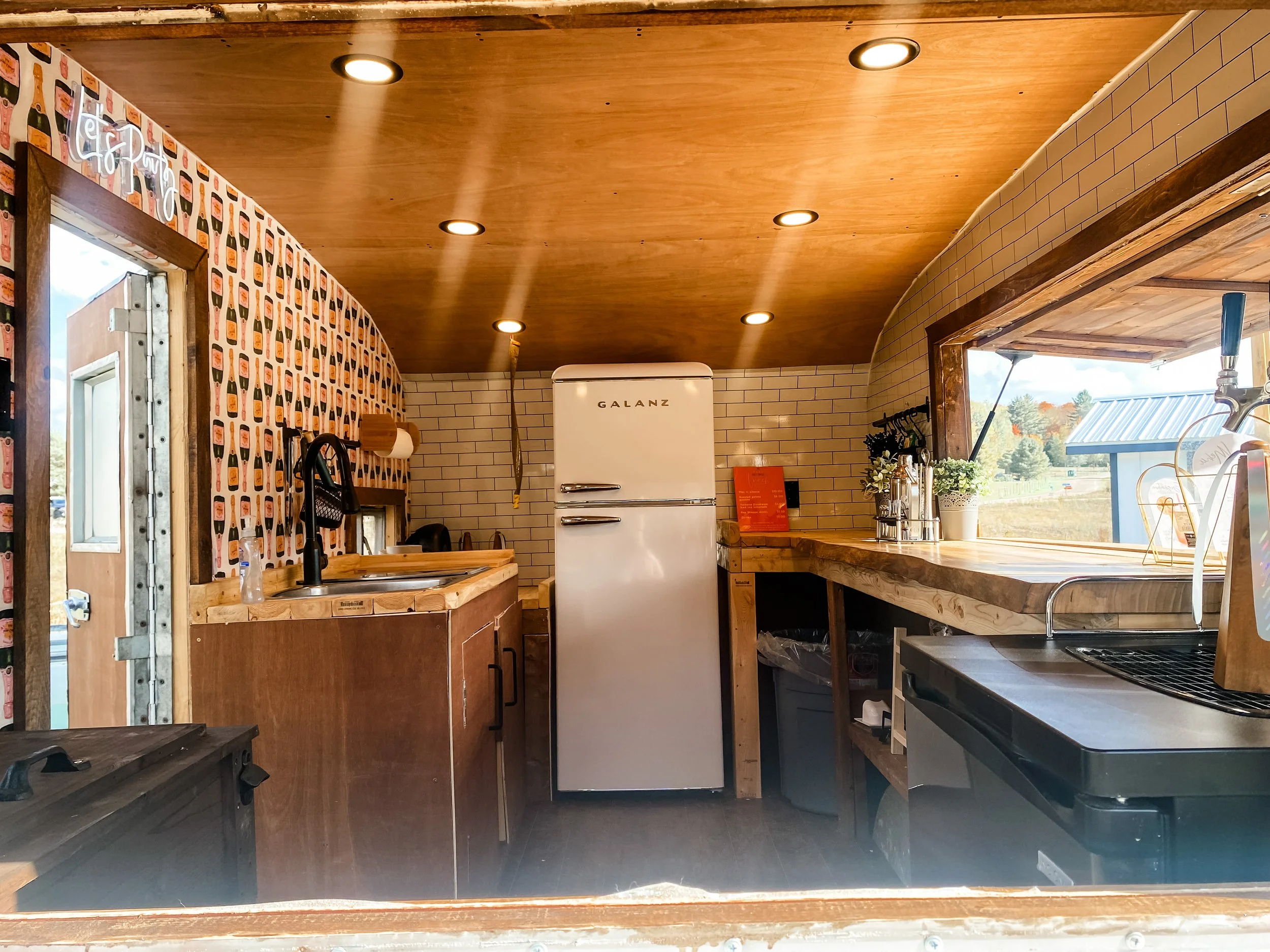 It was in pretty rough shape inside, but we saw all the potential. The best part about remodelling our own trailer was that we could build it to perfectly suit serving a wedding of about 150 people. To us, that meant a lot of fridge space, easy storage for mix, a kegerator for perfectly chilled draught beer, and of course, a fun vintage chic aesthetic on the inside.