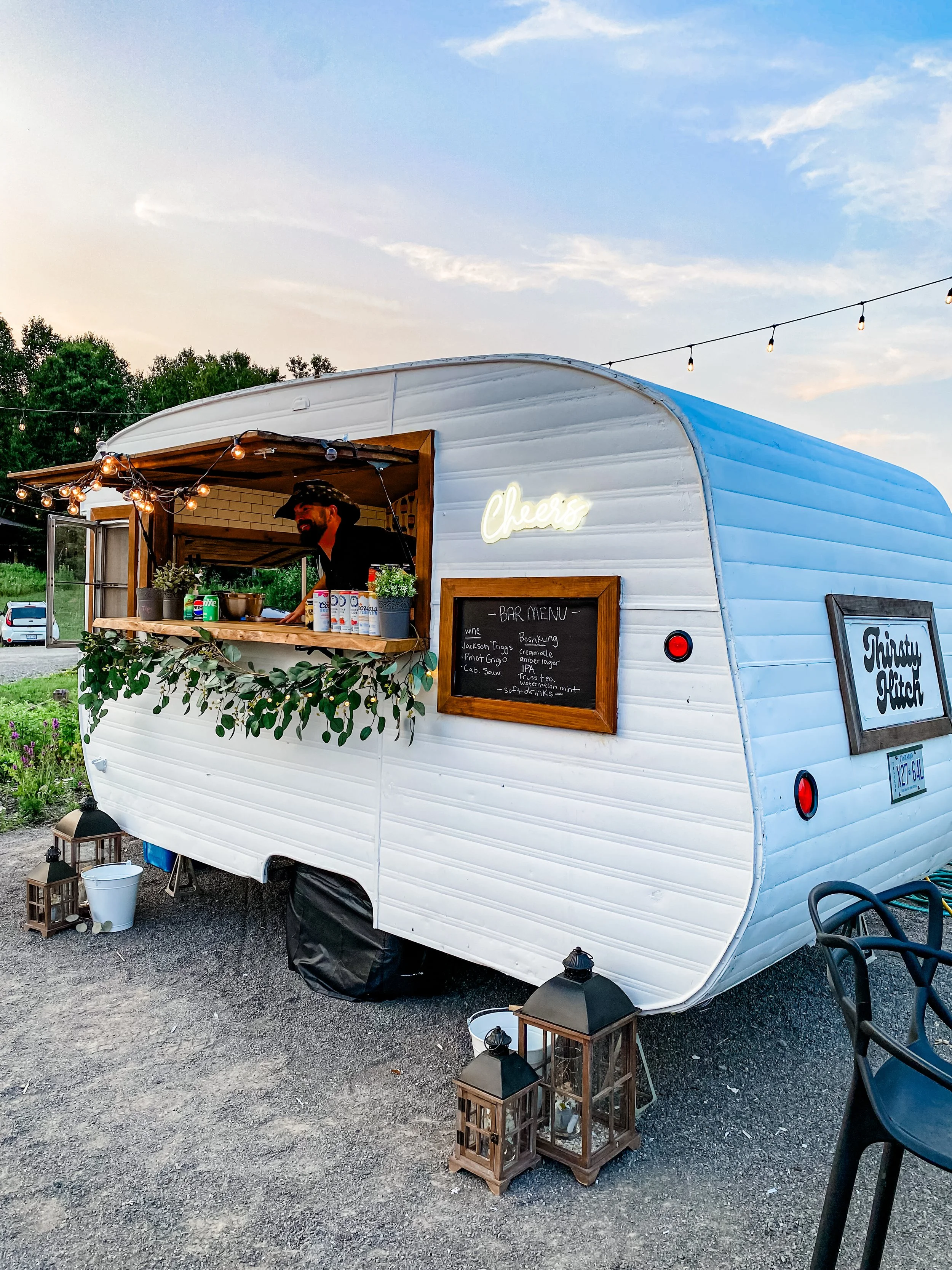 We’re Ashley and Josh, and we’re the faces behind the cocktail shakers at the Thirsty Hitch! Our story begins in January 2022, when we were planning our wedding. We got married at an outdoor tent venue that Ashley managed as the venue coordinator. The tent had a lot of amenities, but - like many unique and outdoor venues - it did not have a bar. Our friends and family are pretty big drinkers, and we love a cocktail ourselves, and so we knew we didn’t want a table in a corner. A mobile bar seemed like a great option, but while we saw a couple based in Southern Ontario and other provinces, there wasn’t a single one based in our area. Not to mention the cost for a trailer to drive from the GTA was almost $5000 before alcohol - and we preferred to put that money into the alcohol ;)