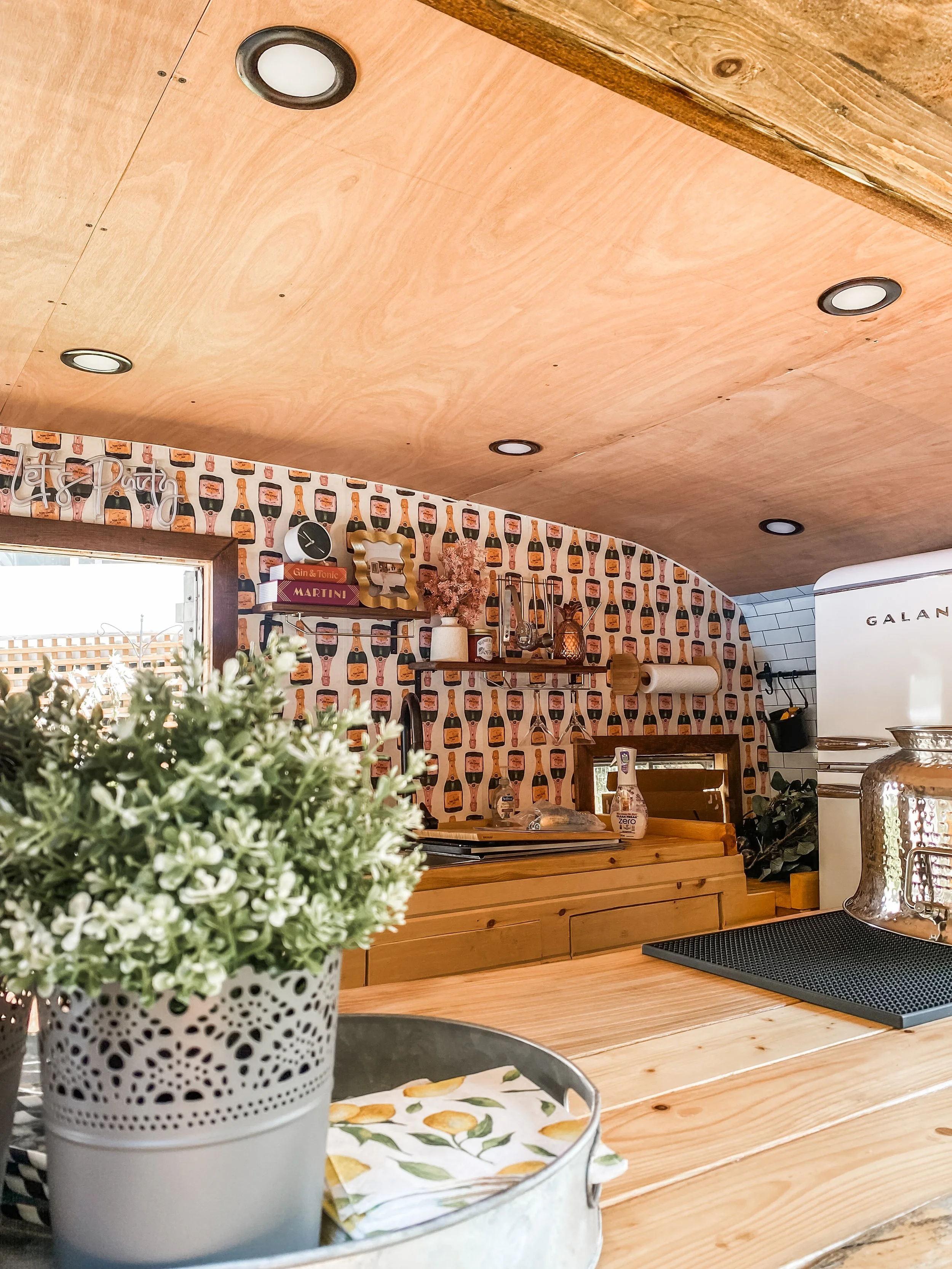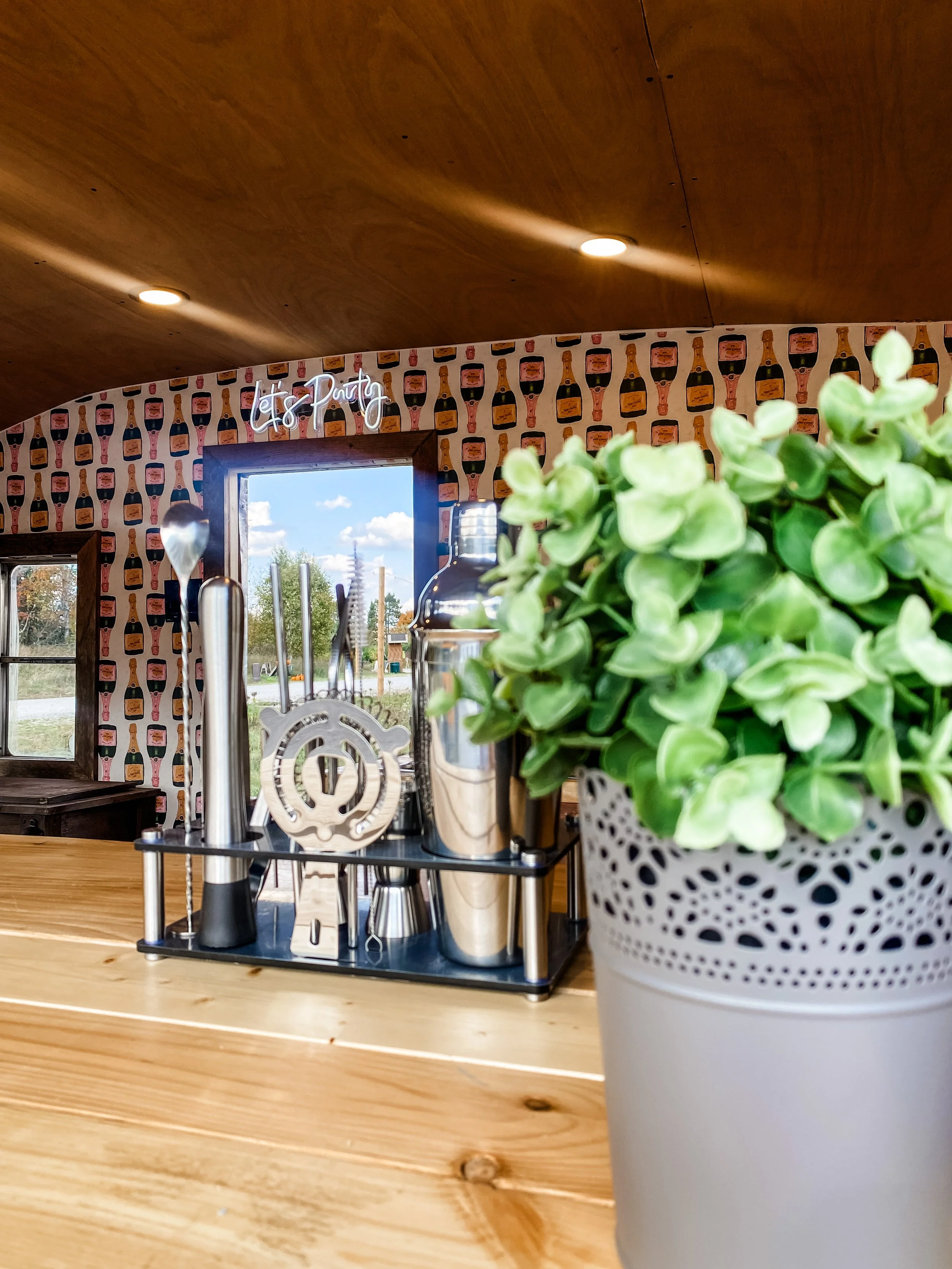 On the outside, it was important to keep the trailer neutral so that it could work with any wedding theme. We’ve added a few decor items since then that help make the trailer feel like a truly special and unique bar on wheels!